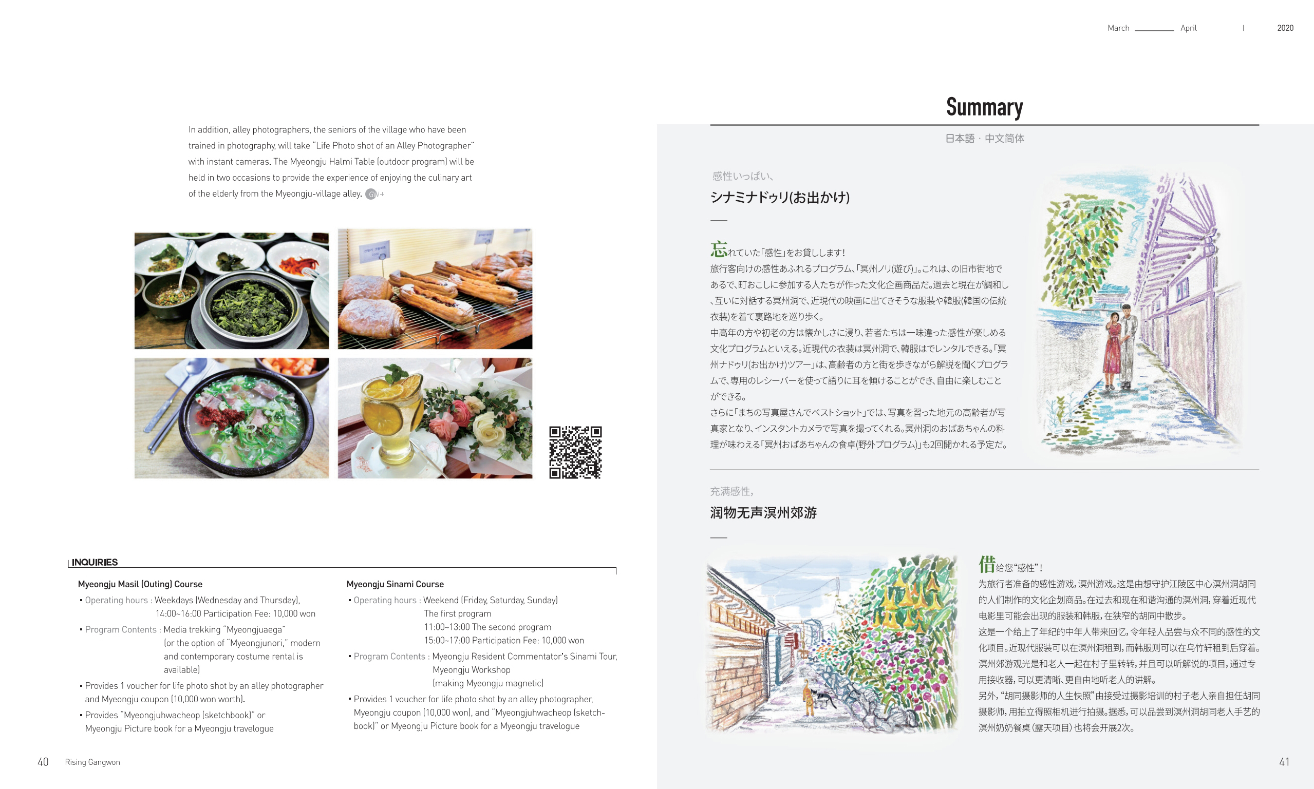 Hopefully that the story of Myeongju-dong will be passed on to foreign travelers through the brief description of "Shinami, Myeongju Outing" in the English version of Rising Gangwon.